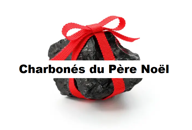 HO HO HO ! Le Père Noël vous présente ses charbons tous droits venus du Pôle Nord, extraits par les petits gobelins des mines.